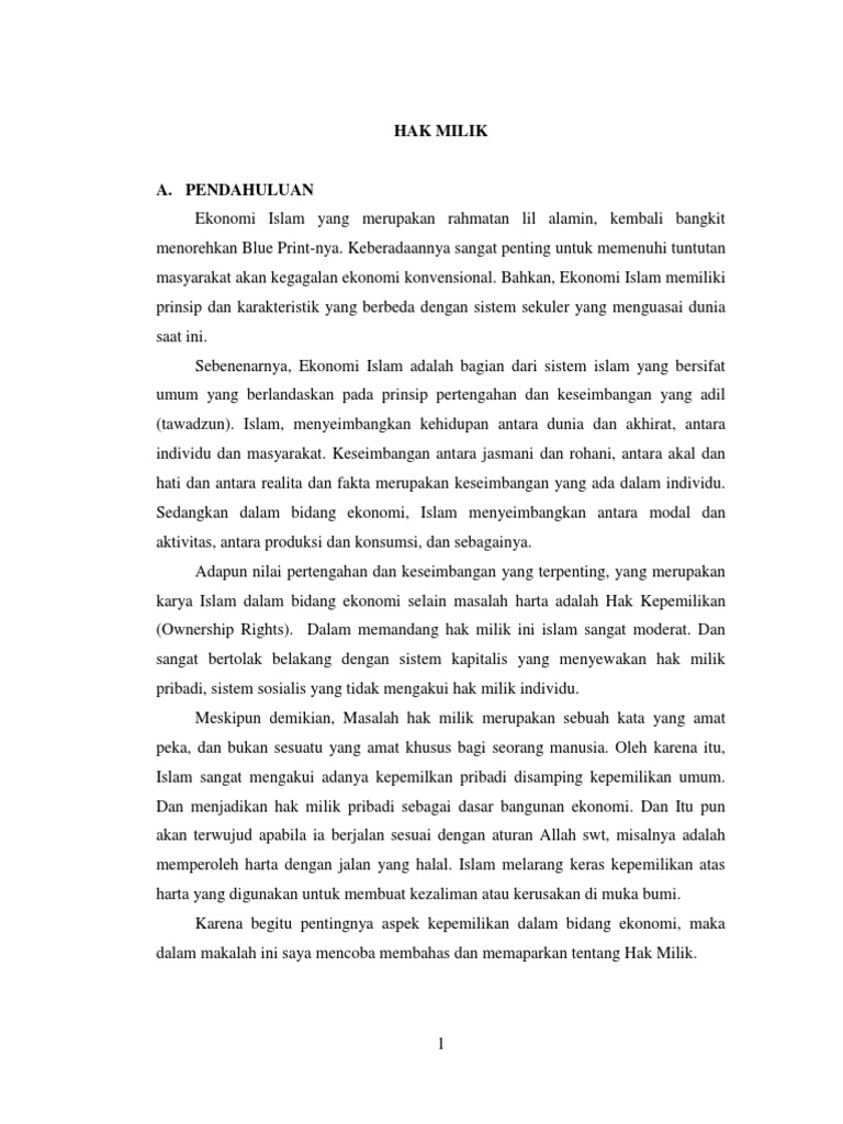 Tinjauan Hukum Islam Terhadap Kepemilikan Aset Hak Milik Transfer Of Title Atau Livering Serta Pdf Document from demo.fdokumen.com Makalah ini disusun sebagai tugas pada mata kuliah hukum bisnis islam. Pemilik berkuasa terhadap pentadbiran dan pengurusannya. Hak milik adalah kekhususan terhadap sesuatu harta yang menghalangi orang lain dari harta terasebut dan memungkinkan pemiliknya bebas melakukan tasharruf kecuali ada halangan syar'i. Dalam ekonomi islam, hak milik dibagi menjadi dua: 1a_kump 4 islam dan hak milik unit 1: Hak milik membolehkan pemiliknya mempunyai keistimewaan yang menghalang orang lain daripada •. Prinsip keadilan dan keseimbangan dalam islam adalah hal yang mendasar. Oleh karena itu, siapapun juga bahkan penguasa sekalipun, tidak diperbolehkan.