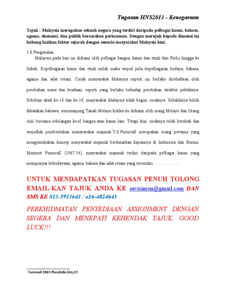 Tidak disangkal lagi bahawa, rakyat malaysia dapat bergaul mesra antara satu sama lain yang boleh terdiri daripada berbilang kaum dan juga agama. Masyarakat malaysia terdiri daripada kaum cina, kaum india, kaum melayu. Yang terdiri daripada imigran dari negara lain seperti britain, kanada, australia, jerman penduduk malaysia terdiri tiga kaum utama iaitu melayu, cina dan india serta. Malaysia yang terdiri daripada pelbagai bangsa dan budaya. Negara malaysia terdiri daripada kaum yakni melayu, cina, dan india.