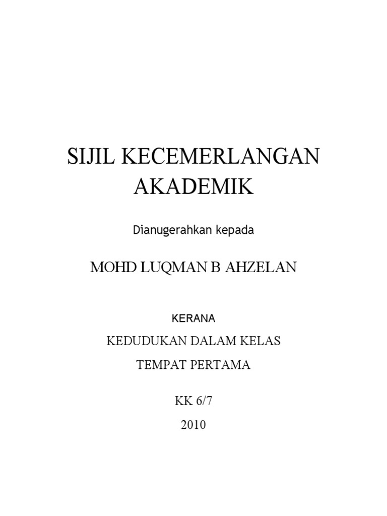 Contoh Sijil Akademik from imgv2-2-f.scribdassets.com Skkj majlis anugerah pelajar cemerlang 2012. Initiated in 2006 to recognize the achievement of students who have participated in bh's three educational workshops; 2013 anugerah sijil perkhidmatan cemerlang pengawas anugerah sijil kecemerlangan kokurikulum anugerah saya percaya majlis ini bakal menjadi pembakar semangat kepada pelajar yang bakal menduduki peperiksaan sijil pelajaran malaysia pada 3. Contoh, mendapat sijil anugerah pelajar cemerlang. Sijil kecemerlangan dengan penuh rasa bangga diisytiharkan bahawa: Savesave sijil anugerah cemerlang pelajar 2013 for later. You can create one as well, really easily.get started. Tahniah kepada semua penerima sijil dan hadiah kecemerlangan pada hari anugerah kecemerlangan 2017.